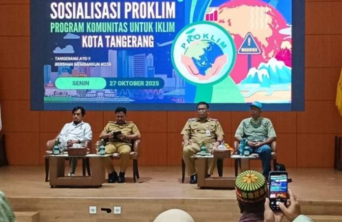 KOTA TANGERANG – Dinas Lingkungan Hidup (DLH) Kota Tangerang menggelar kegiatan Sosialisasi Program Komunitas untuk Iklim (ProKlim) Tingkat Kota Tangerang Tahun 2025, di Ruang Al Amanah, Senin (27/10/25). Kegiatan ini, sebagai upaya memperkuat aksi adaptasi dan mitigasi terhadap perubahan iklim di tingkat masyarakat.