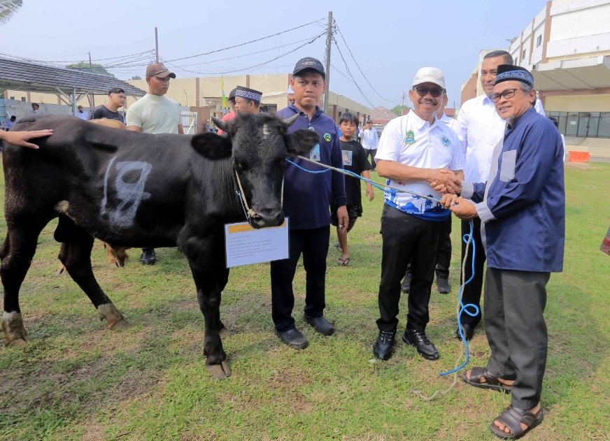 KOTA TANGERANG – Pemerintah Kota (Pemkot) Tangerang terus mendorong tumbuhnya semangat berbagi dan kepedulian sosial di tengah masyarakat. Salah satu wujud nyata semangat tersebut ditunjukkan melalui kolaborasi antara institusi dan masyarakat dalam kegiatan penyerahan 23 ekor sapi kurban dari Rumah Sakit Umum Pusat (RSUP) Dr. Sitanala, kepada masjid, musala dan majelis taklim di lingkungan sekitar, yang digelar di halaman RSUP Dr. Sitanala, Kamis (05/06/2025).