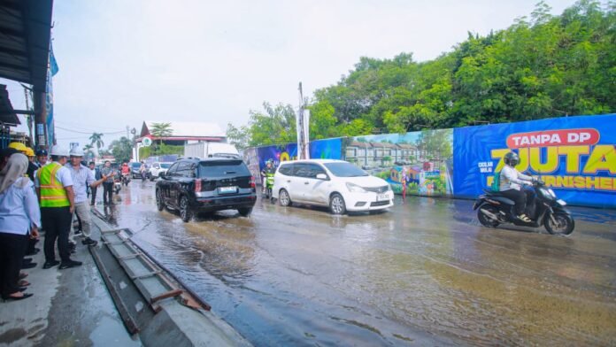 Di tengah genangan yang mengganggu arus lalu lintas, Pilar menegaskan bahwa persoalan tersebut dipicu oleh kombinasi faktor teknis dan perencanaan. Limpasan air dari area pembangunan perumahan menjadi penyumbang utama, terutama karena sistem penampungan yang belum optimal.