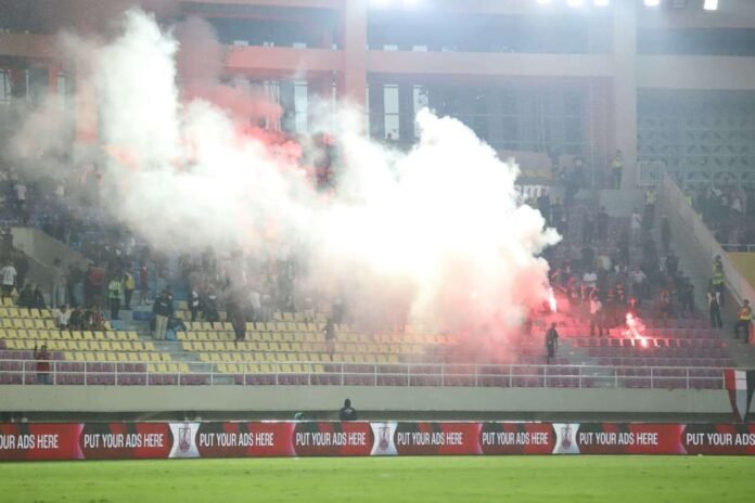 SOLO – Pertandingan Liga antara Persis Solo melawan Persita Tangerang di Stadion Manahan, Solo pada Minggu (4/1/2026) diwarnai insiden kericuhan akibat ulah oknum suporter. Aksi menyalakan flare di dalam stadion membuat laga sempat terhenti dan memaksa aparat bertindak cepat demi menjaga keamanan.