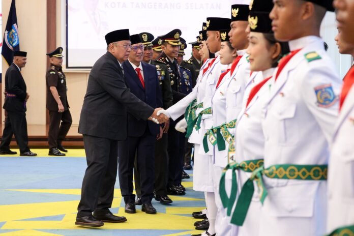 TANGSEL – Wali Kota Tangerang Selatan (Tangsel), Benyamin Davnie, mengukuhkan 50 anggota Pasukan Pengibar Bendera Pusaka (Paskibraka) Kota Tangerang Selatan tahun 2025. Acara pengukuhan Paskibraka berlasung di Aula Blandongan, Puspemkot Tangsel. Jumat (15/08/2025).