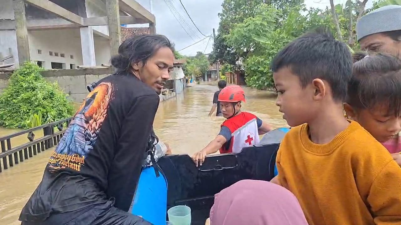 TANGERANG – Tim relawan Palang Merah Indonesia (PMI) Kabupaten Tangerang terus melakukan evakuasi warga terdampak banjir di sejumlah wilayah. Di Kecamatan Sukamulya dan Kresek, para relawan tanpa lelah mengevakuasi warga ke lokasi aman setelah permukiman mereka terendam banjir.