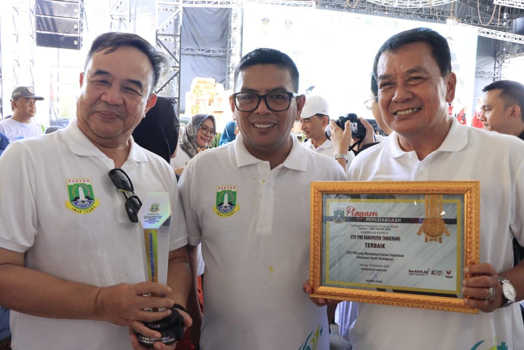 KAB. TANGERANG – UDD PMI Kabupaten Tangerang kembali menorehkan prestasi. Berkat inovasi pelayanan darah terintegrasi berbasis digital melalui aplikasi Si Doni, PMI Kabupaten Tangerang diganjar penghargaan oleh Pemerintah Provinsi Banten pada peringatan Hari Kesehatan Nasional (HKN) ke-61 yang digelar di Uptown Park Sumarecon, Gading Serpong, Kecamatan Kelapa Dua, Rabu (17/12/2025).