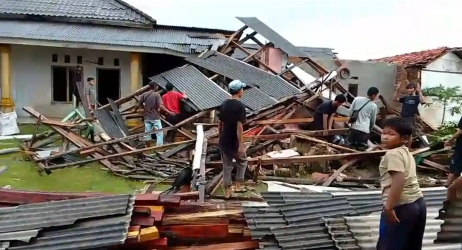 “Jadi tadi siang itu terjadi hujan disertai angin kencang. Beberapa rumah banyak atapnya lepas karena terbang terbawa angin,” ujarnya.