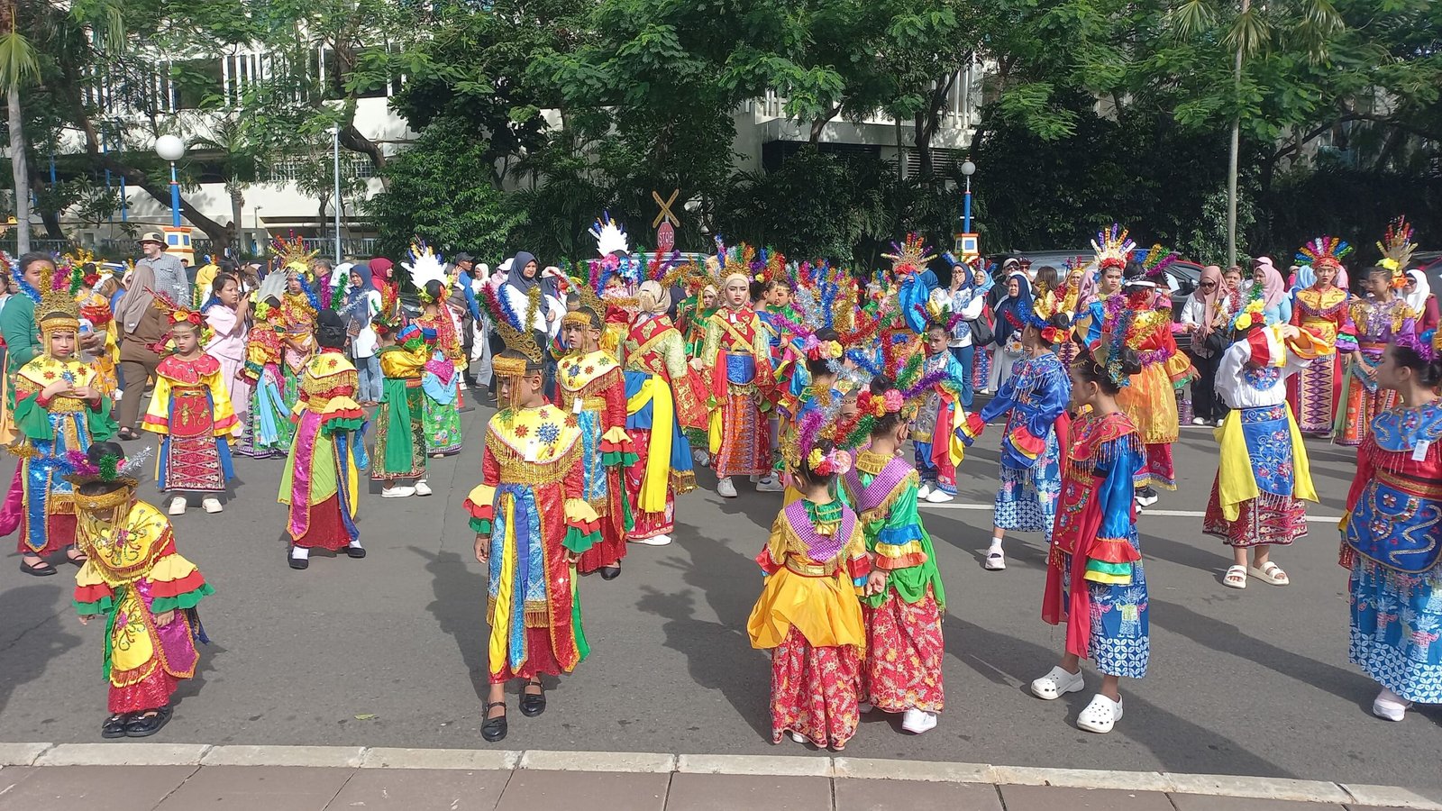 JAKARTA – Ribuan peserta menari dalam kegiatan Semarak Nandak Ondel-ondel Betawi yang berlangsung di Symphony of The Sea, Ancol, Jakarta, pada Sabtu (25/10/2025).