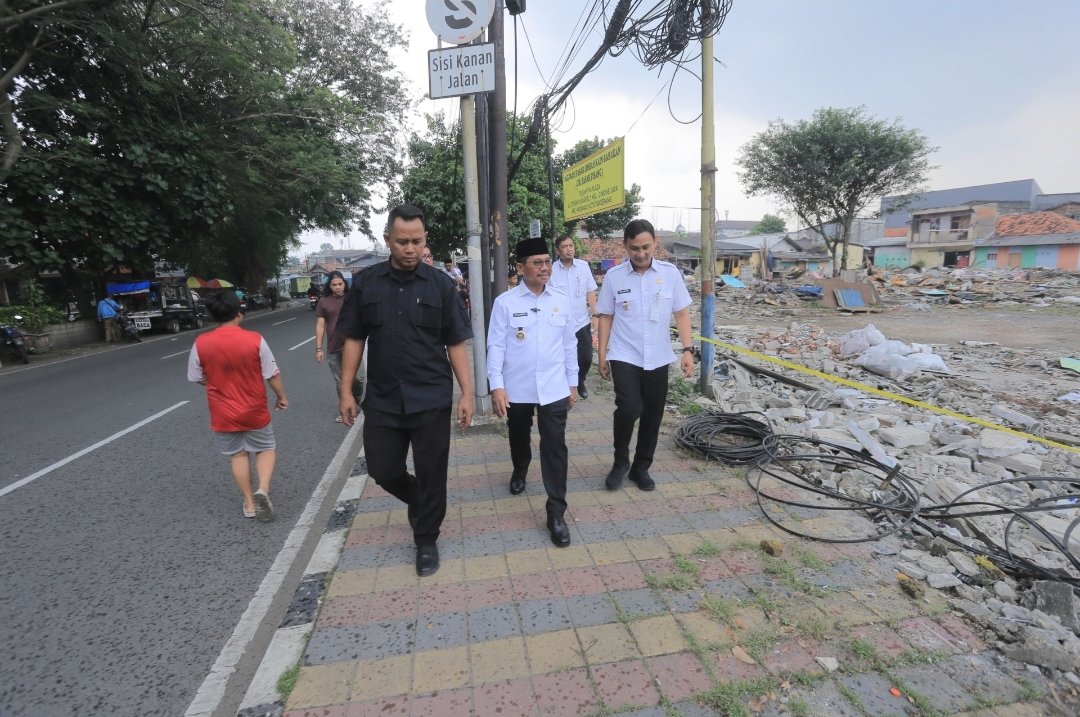 KOTA TANGERANG – Wali Kota Tangerang, H. Sachrudin, meninjau lahan bekas Pasar Pisang yang para pedagangnya telah direlokasi ke Plaza Shinta.